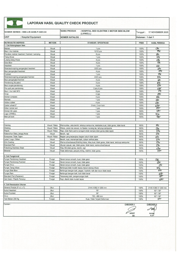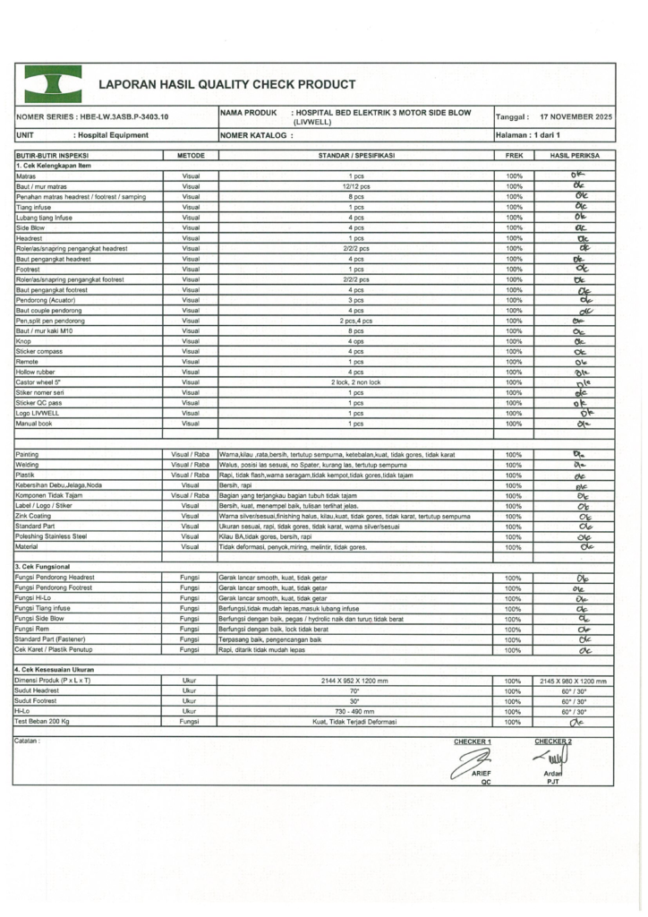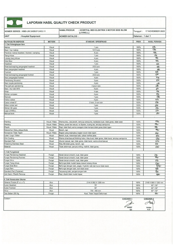 LAPORAN HASIL QUALITY CHECK PRODUCT